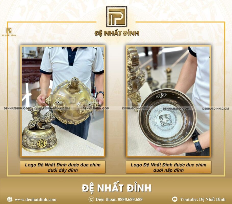 Để đảm bảo quý khách luôn nhận được đúng sản phẩm chính hãng, chúng tôi khắc chìm Logo Đệ Nhất Đỉnh lên đáy đỉnh và bên trong nắp đỉnh. Mọi sản phẩm không có logo Đệ Nhất Đỉnh đều không phải là sản phẩm do chúng tôi sản xuất