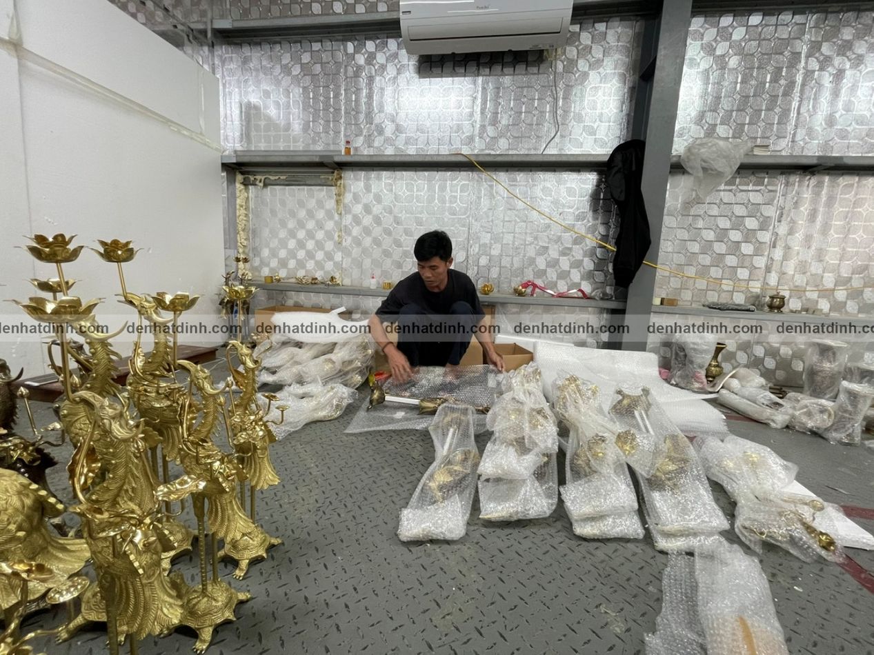 Bộ đỉnh đồng đầy đủ gồm 14 phụ kiện đi kèm tăng sự trang trọng cho bàn thờ