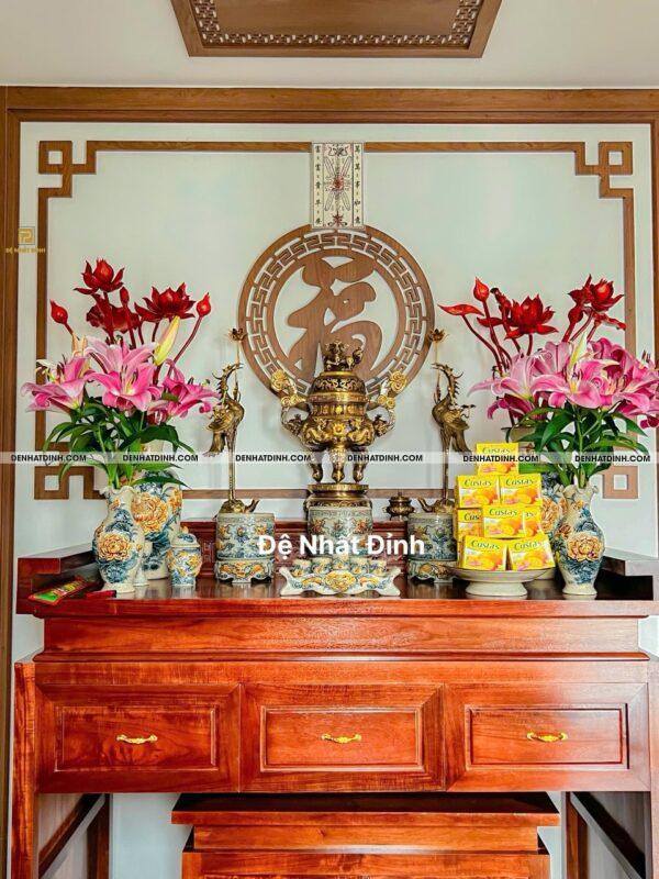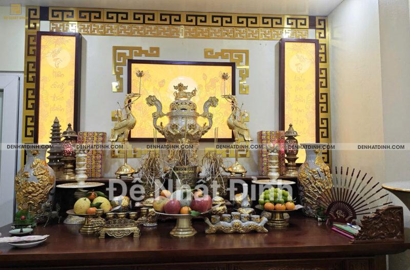 Một bộ đỉnh đồng thờ gia tiên đặt đúng vị trí sẽ giúp tổng thể bàn thờ cân đối, vững chãi và trang nghiêm hơn.