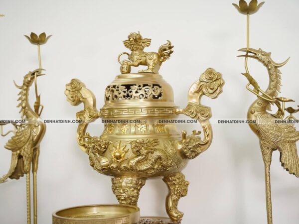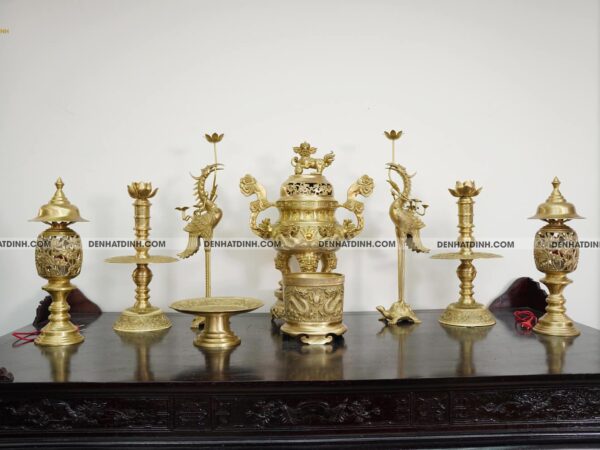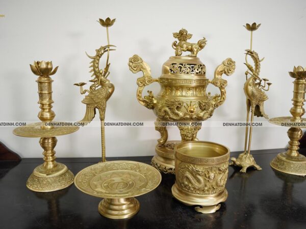 Bộ Ngũ Sự Song Long 65 (36kg) Hoa Văn Mộc – Tâm điểm trang nghiêm cho bàn thờ Việt