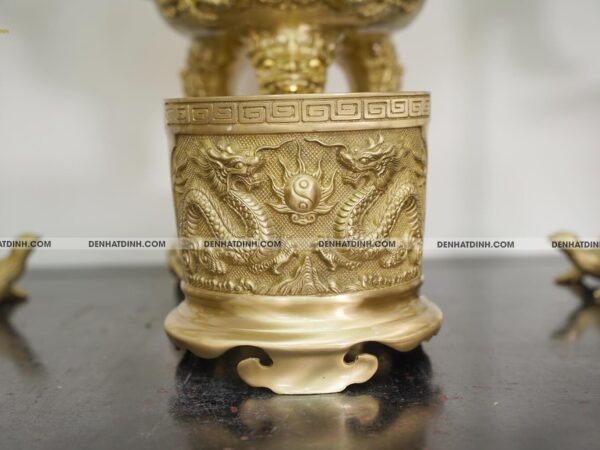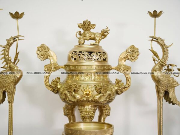 - Đỉnh đồng: nên được đặt ở vị trí trung tâm của bàn thờ, lùi về phía trong. Đây là vị trí quan trọng nhất, dùng để đốt trầm và hương vào những dịp quan trọng như lễ, tết.