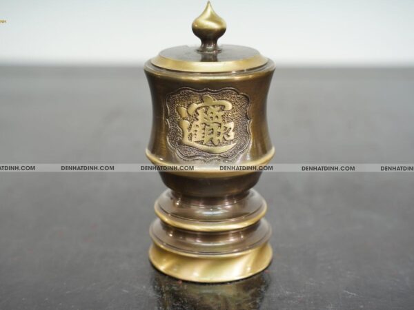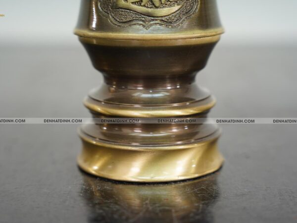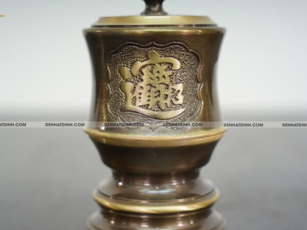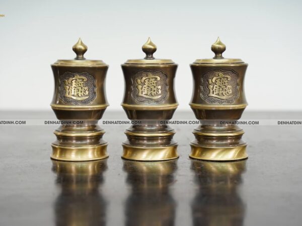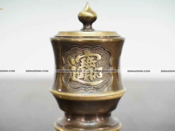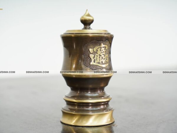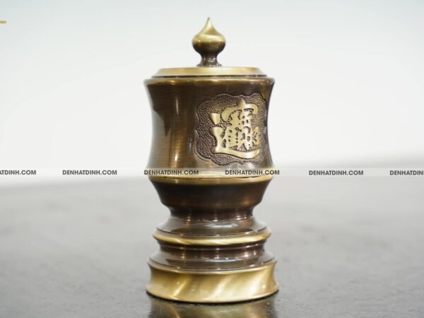 Trên thân mỗi đài được chạm khắc chữ Hán tinh xảo – thường là các chữ mang ý nghĩa cát tường như “Lộc”, “Phúc”, “Thọ” hoặc “Tài”, thể hiện mong ước về một cuộc sống đủ đầy, sung túc và trường thọ. Sự kết hợp giữa nghệ thuật chế tác tinh tế và chất liệu bền bỉ giúp đài nước 10 màu hun cổ không chỉ là một vật phẩm phong thủy mà còn là điểm nhấn nghệ thuật trong không gian thờ cúng hoặc trưng bày.