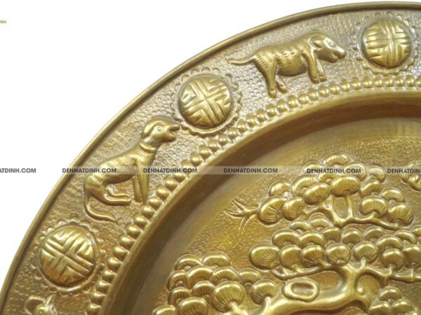 Bên ngoài viền mâm còn được chạm hình 12 con giáp và các họa tiết cổ điển, tạo nên tổng thể hài hòa, trọn vẹn về mặt phong thủy và thẩm mỹ.