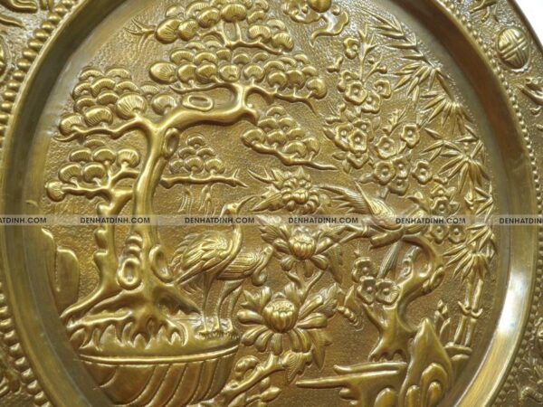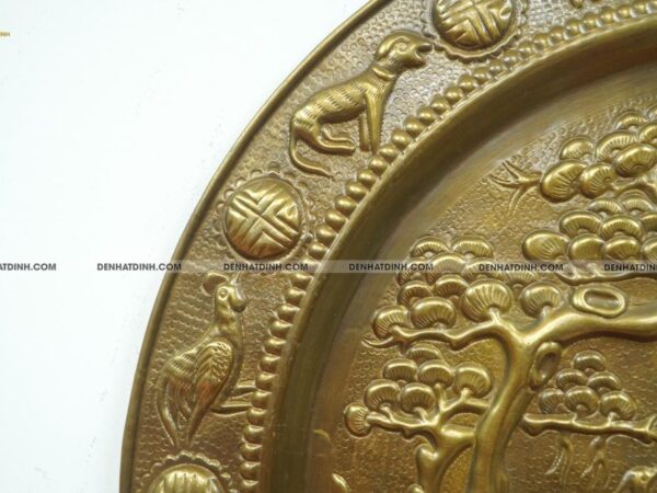 Mâm Đồng Tùng Hạc 52cm Màu Cổ – Biểu Tượng Phúc Thọ Trường Tồn Cho Không Gian Sống
