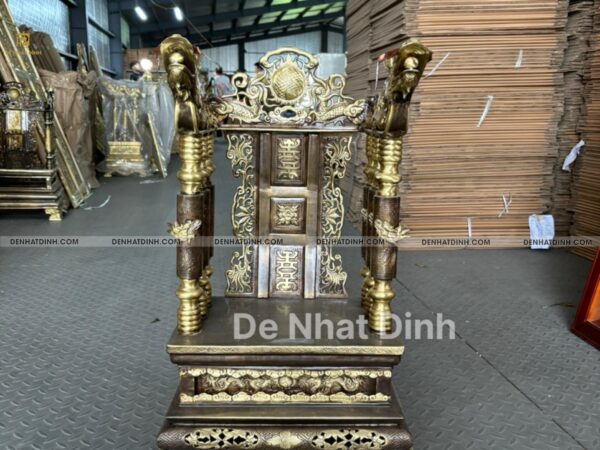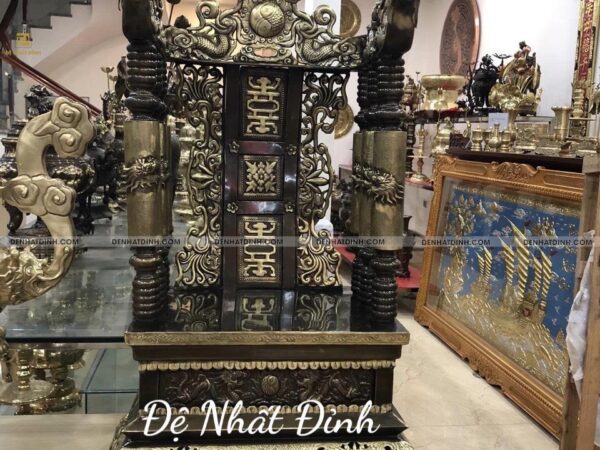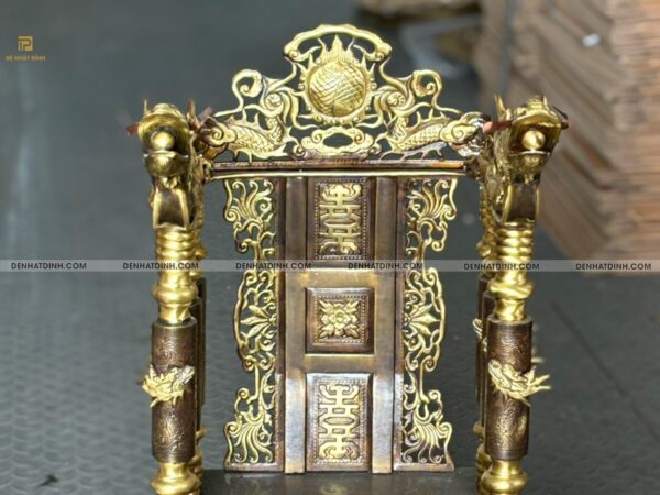 Ngai thờ bằng đồng là một trong những vật phẩm thờ cúng linh thiêng, thường đặt tại trung tâm bàn thờ gia tiên, bàn thờ tổ dòng họ hoặc tại các nhà thờ họ, từ đường. Sản phẩm trong hình là mẫu ngai thờ đúc bằng đồng vàng, chạm khắc thủ công tinh xảo, mang đậm dấu ấn truyền thống văn hóa tâm linh Việt.