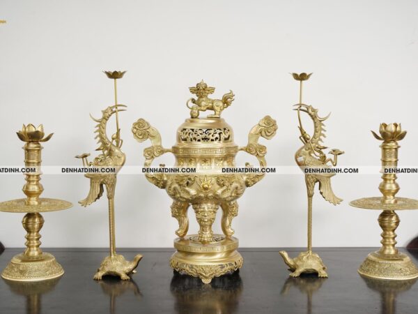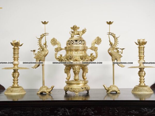 - Thiết kế: Bao gồm 5 món: đỉnh, hạc, nến, mâm, và bình, tạo nên bộ ngũ sự hoàn chỉnh.