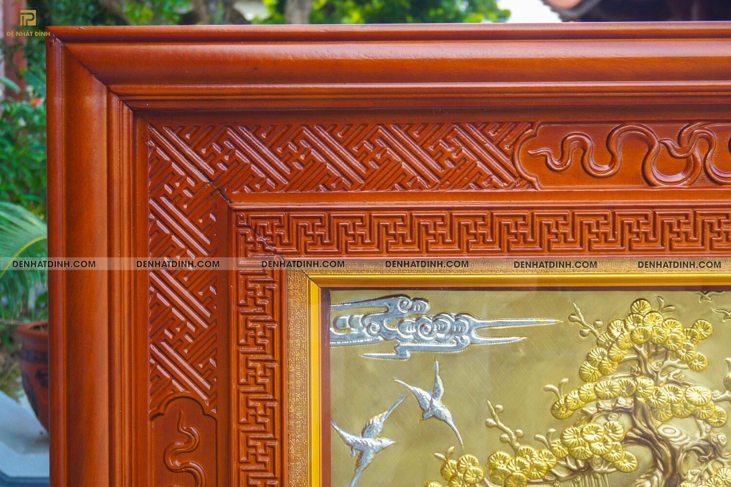 Khung tranh: Làm từ gỗ tự nhiên bản lớn, được sơn phủ PU chống ẩm mốc và mối mọt, vân gỗ đẹp, chắc chắn, sang trọng.