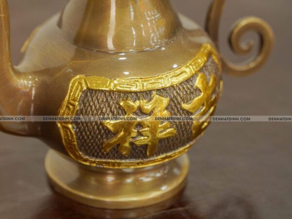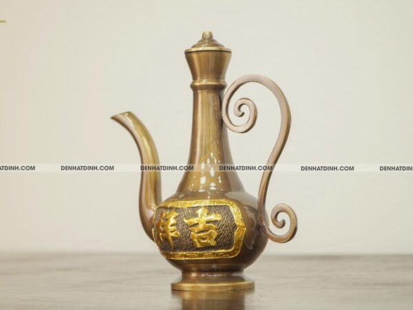 - Tên sản phẩm: Ấm thờ bằng đồng hun cổ dát vàng điểm chữ