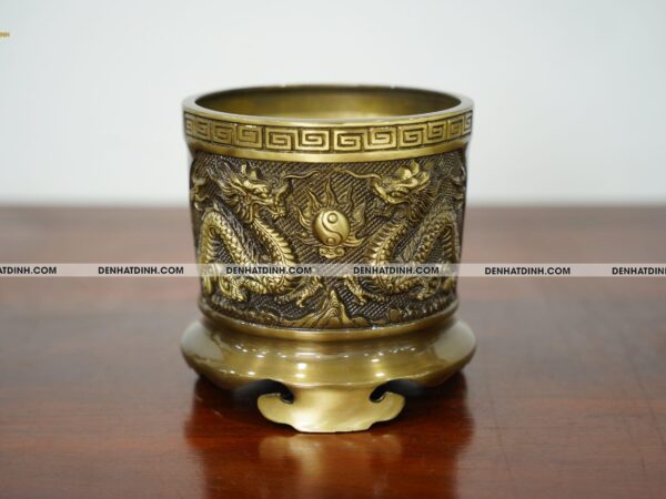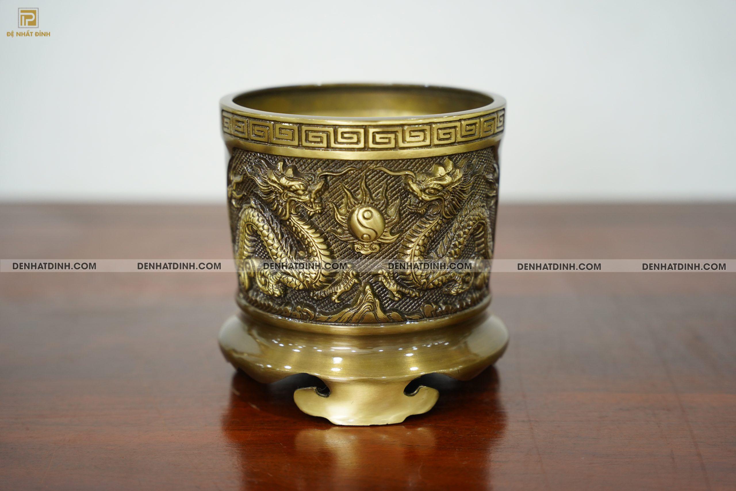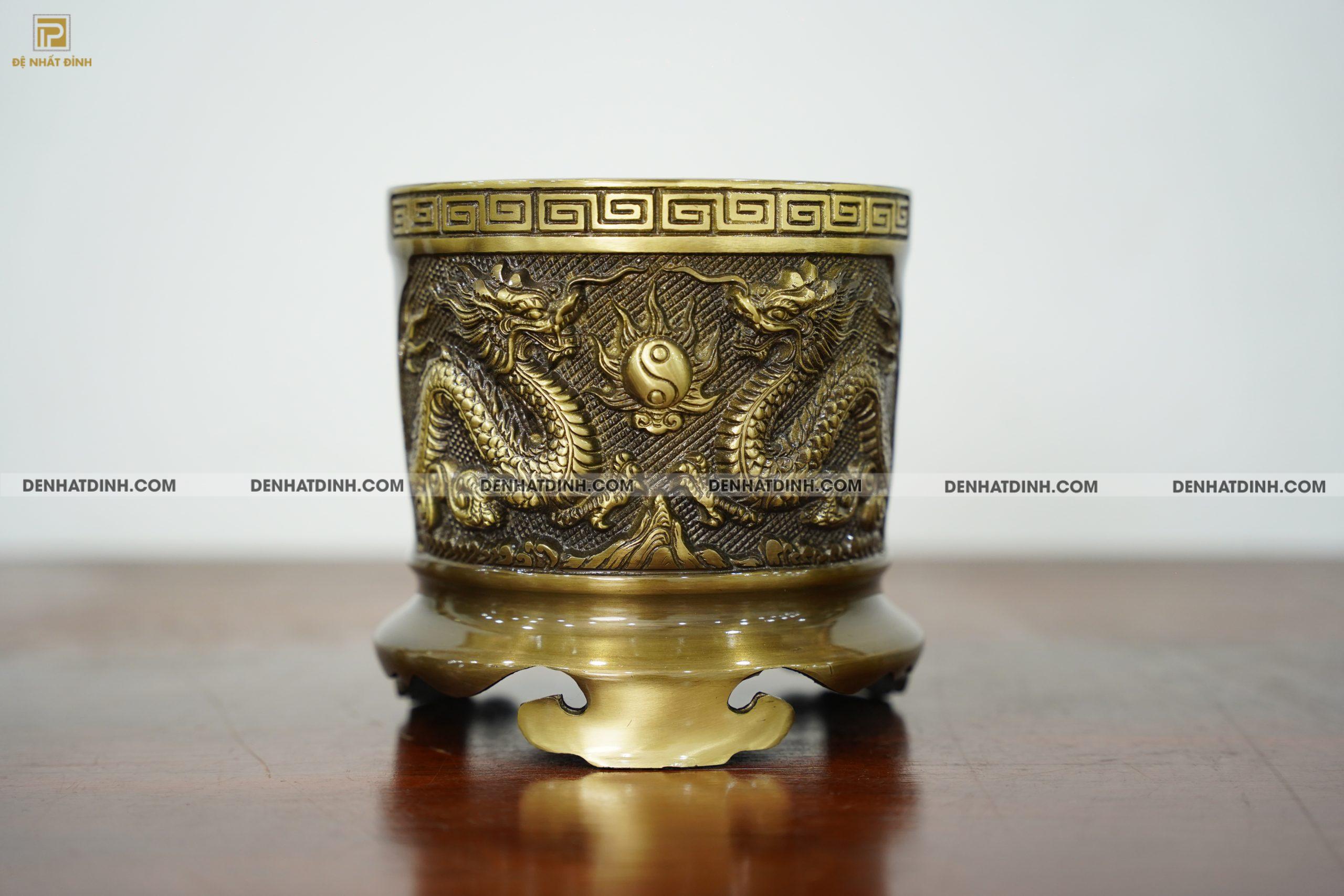 Bát hương bằng đồng 14 màu hun giả cổ – Song long chầu nguyệt không chỉ là vật phẩm thờ cúng mà còn là biểu tượng tâm linh giàu giá trị phong thủy. Sự kết hợp giữa chất liệu đồng cattut cao cấp, kỹ thuật chạm khắc thủ công và hoa văn truyền thống giúp sản phẩm trở thành lựa chọn lý tưởng cho mọi không gian thờ tự.