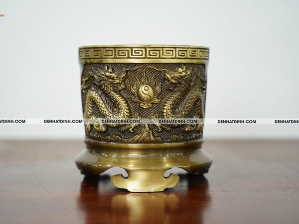 Bát hương bằng đồng 14 màu hun giả cổ – Song long chầu nguyệt không chỉ là vật phẩm thờ cúng mà còn là biểu tượng tâm linh giàu giá trị phong thủy. Sự kết hợp giữa chất liệu đồng cattut cao cấp, kỹ thuật chạm khắc thủ công và hoa văn truyền thống giúp sản phẩm trở thành lựa chọn lý tưởng cho mọi không gian thờ tự.