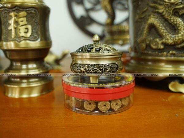 - Phụ kiện thờ khác: Gồm những món đồ như đài thờ, ống hương, mâm bồng, bát hương, xông trầm… Việc lựa chọn những món đồ bày trí phù hợp sẽ phụ thuộc vào nhu cầu cụ thể của từng quý khách hàng cũng như không gian bàn thờ.