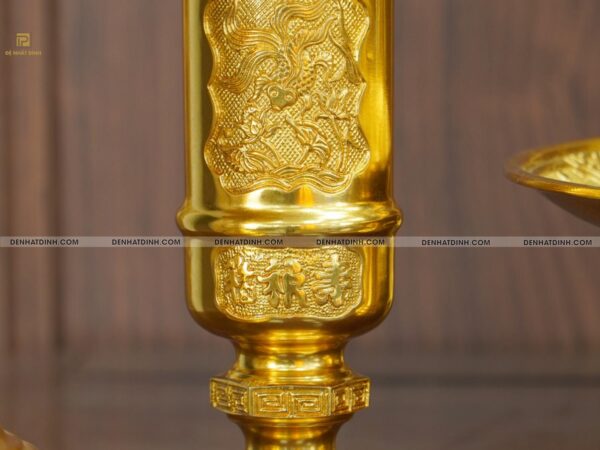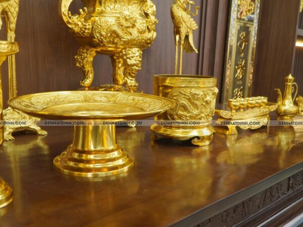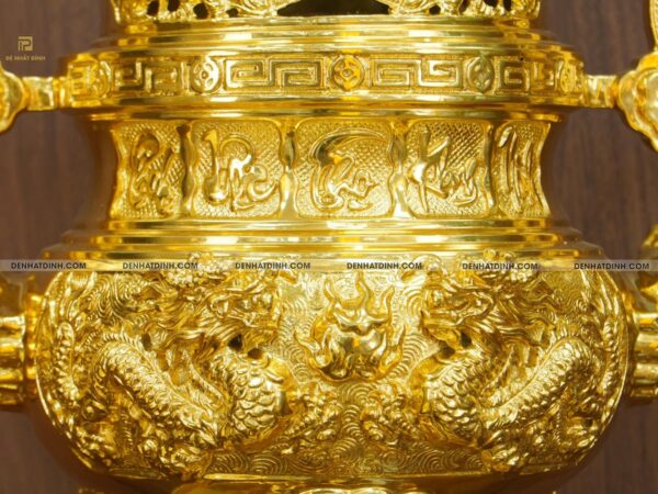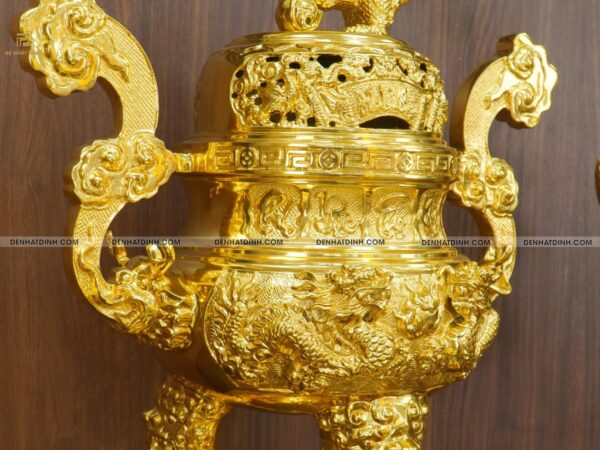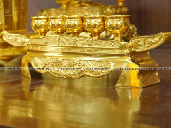 Khi nói đến việc trang trí và hoàn thiện không gian thờ cúng, việc chọn lựa bộ đồ thờ cúng phù hợp là cực kỳ quan trọng. Bộ đỉnh đồng ngũ sự Cuốn Thư 65 dát vàng 24K cùng ống hương, mâm bồng, bát hương, chén thờ của Đệ Nhất Đỉnh là một lựa chọn lý tưởng, không chỉ mang lại vẻ đẹp thẩm mỹ mà còn đảm bảo độ bền lâu dài.