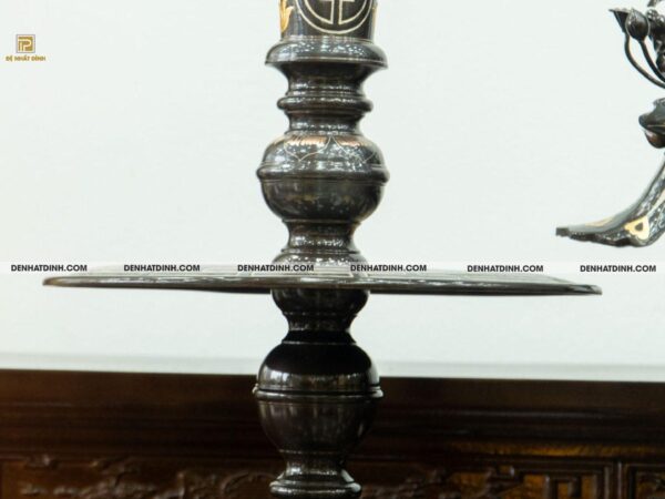 Chân nến bằng đồng tượng trưng cho ánh sáng, soi đường cho gia tiên và tăng thêm tính trang nghiêm cho không gian thờ.