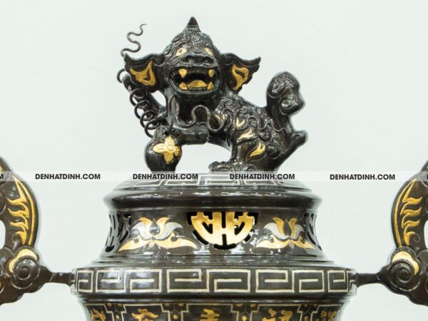 Đỉnh đồng tượng trưng cho trục kết nối âm dương, là vật trung tâm hội tụ linh khí trên bàn thờ. Khói hương bay lên từ đỉnh giúp không gian thêm linh thiêng.