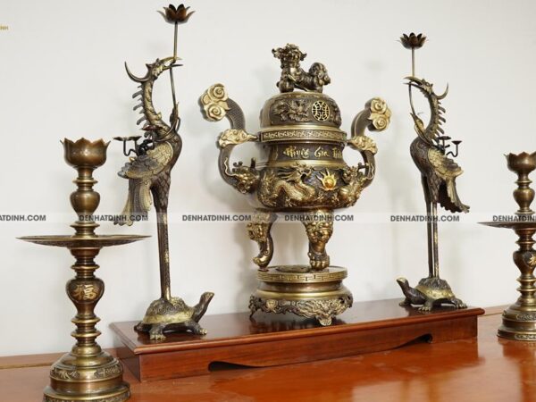 | Kích thước | Đỉnh: 68 cm – Hạc: 72 cm – Nến: 47 cm |
