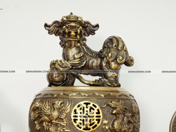 Bộ 3 chân quỳ tam lân trấn giữ trọng lượng cả bộ đỉnh nên được đúc liền nguyên khối. Với thiết kế này, gia chủ yên tâm thờ phụng mà không lo độ nóng của hương hỏa trên ban có thể làm lung lay các mối hàn hay ốc vít như những loại hàng đồng Đài Loan rẻ tiền hay gặp phải.