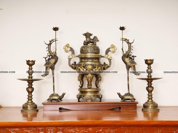Tên Sản Phẩm: Bộ đỉnh đồng ngũ sự Phụng Gia Tiên 68 nến kỹ