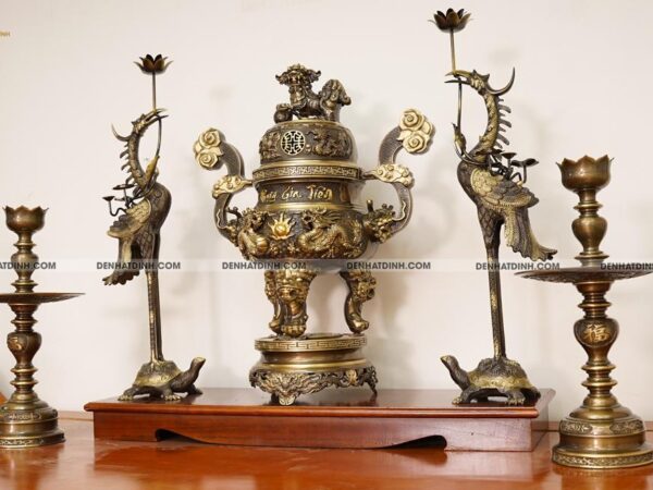 | Kích thước | Đỉnh: 68 cm – Hạc: 72 cm – Nến: 47 cm |