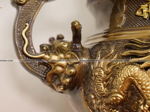Đặc biệt, chân quỳ chia 5 móng khác biệt hoàn toàn với hàng thông thường chỉ là dạng chân quỳ mấu, càng tạo ra quyền uy cho đỉnh đồng. Bởi xưa kia, cũng chỉ có vua chúa mới được mặc hoàng bào có họa tiết Rồng 5 móng thôi.
