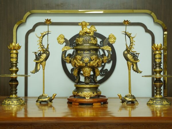 | Kích thước | Đỉnh: 66 cm – Hạc: 72 cm – Nến: 51 cm |