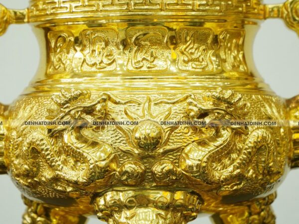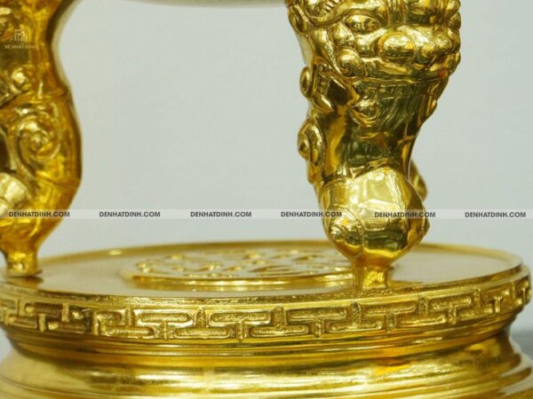 Tất cả các chi tiết đều được dát vàng kín bằng công nghệ thủ công truyền thống, lớp vàng bám đều, bóng sáng và không bong tróc trong điều kiện sử dụng thông thường.