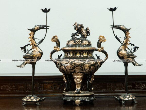 - Tên sản phẩm: Bộ đỉnh tam sự hạc hoa sòi 60 đồng đỏ cạo