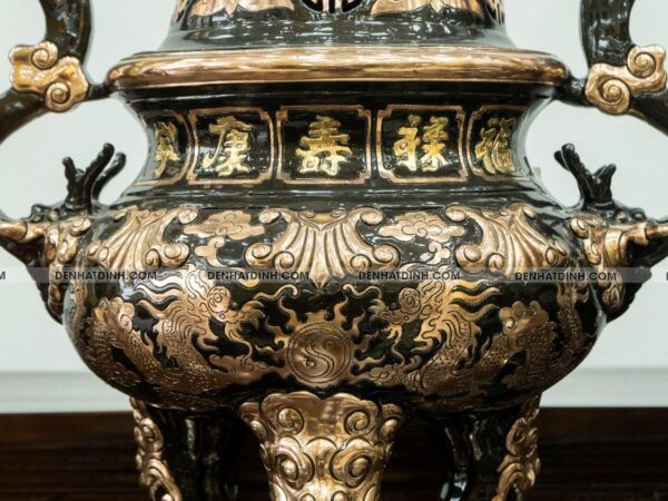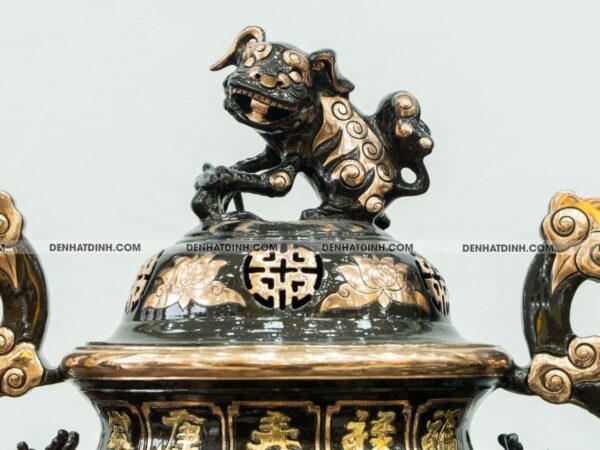 Đỉnh đồng đặt giữa mang ý nghĩa trấn trạch, xua đuổi tà khí, giữ vững hòa khí trong gia đình.