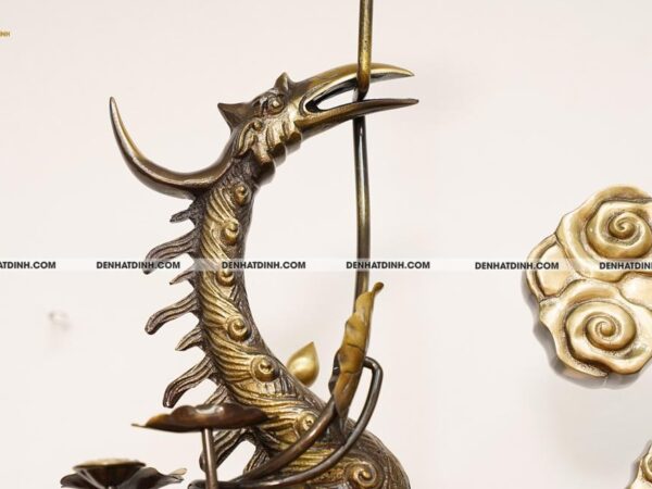 Bộ đỉnh thờ Ngũ Sự Song Long 66 Hun Cổ không chỉ là vật phẩm thờ cúng, mà còn mang nhiều ý nghĩa phong thủy sâu sắc. Hình tượng Song Long chầu nguyệt là biểu trưng của cặp rồng hội tụ linh khí trời đất, tượng trưng cho quyền uy, sự bảo hộ và tài lộc. Long khí trong phong thủy giúp gia chủ tăng cường phúc lộc, hóa giải sát khí và mang lại vận may trong cuộc sống. Tượng Nghê trên nắp đỉnh có tác dụng trấn trạch, bảo vệ gia đạo khỏi tà khí, giữ vững cát khí và sự bình an trong gia đình. Đôi hạc đứng trên lưng rùa biểu trưng cho trường tồn, thanh cao và sự hòa hợp âm dương, là cầu nối tâm linh giữa con cháu và tổ tiên. Hình ảnh rùa là biểu tượng cho nền tảng vững chắc, ổn định, trong khi hạc thể hiện sự thanh thoát và hướng thiện. Hoa sen trên thân nến và miệng hạc tượng trưng cho sự thuần khiết, giúp thanh lọc không gian thờ, giữ cho tâm trí an tịnh và thanh cao. Màu hun cổ mang lại cảm giác cổ kính, sâu lắng và trang nghiêm, giúp không gian thờ trở nên thiêng liêng hơn. Sự kết hợp hài hòa giữa các linh vật và biểu tượng phong thủy giúp kích hoạt năng lượng tốt, hỗ trợ gia chủ về tinh thần và tài vận. Sản phẩm mang tính dẫn khí, tụ khí, giúp điều hòa phong thủy trong ngôi nhà, giữ cho dòng năng lượng lưu thông tích cực. Việc sử dụng đỉnh thờ bằng đồng cũng giúp xua đuổi tà khí, thanh tẩy uế tạp và gia tăng cát khí cho không gian thờ phụng. Đây là vật phẩm được nhiều chuyên gia phong thủy khuyên dùng để tăng vượng khí và duy trì sự hưng thịnh lâu dài cho gia đình.
