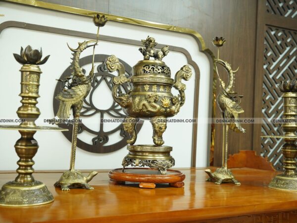 Trong văn hóa thờ cúng của người Việt, bộ ngũ sự bằng đồng luôn giữ vai trò trung tâm trên bàn thờ gia tiên hay bàn thờ Phật. Trong đó, Bộ ngũ sự song long 64 hoa văn hun cổ là một trong những mẫu đồ thờ được ưa chuộng nhất hiện nay, không chỉ bởi vẻ đẹp cổ kính mà còn vì giá trị tâm linh sâu sắc mà nó mang lại.