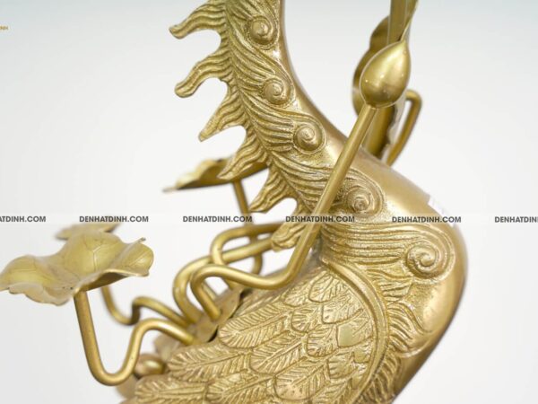 Đôi hạc chầu ngẩng cao, mỏ hạc thường ngậm viên ngọc hoặc cành sen, biểu trưng cho sự thanh cao và trường thọ.
