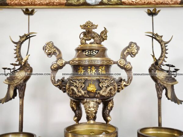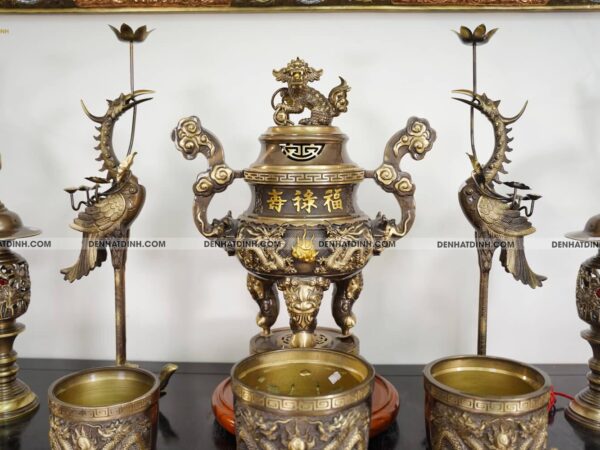 Bộ sản phẩm này không chỉ phục vụ mục đích thờ cúng mà còn là một món đồ trang trí tuyệt vời. Màu sắc hun cổ tạo nên một không gian ấm áp và trang trọng, phù hợp với bất kỳ không gian thờ cúng nào.