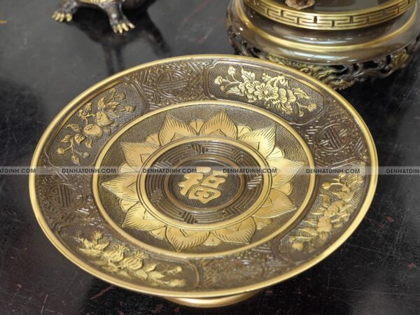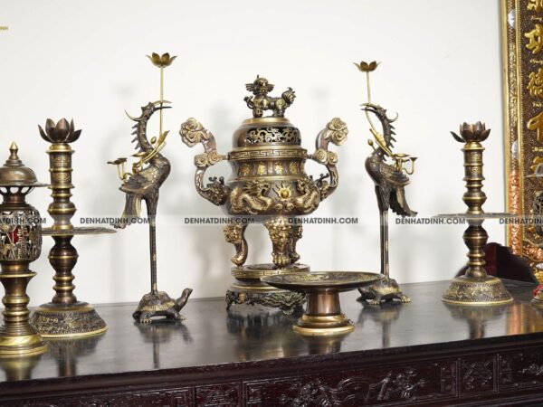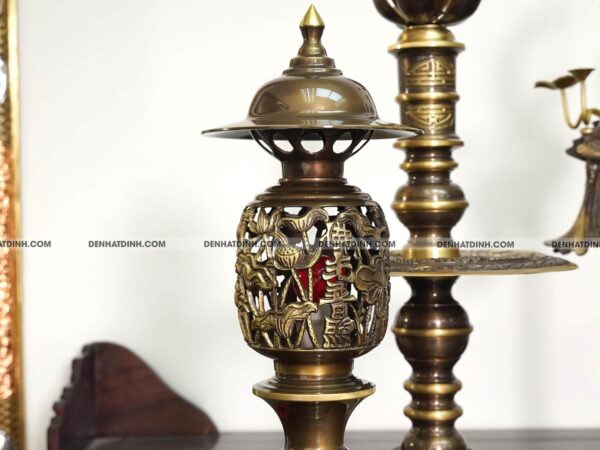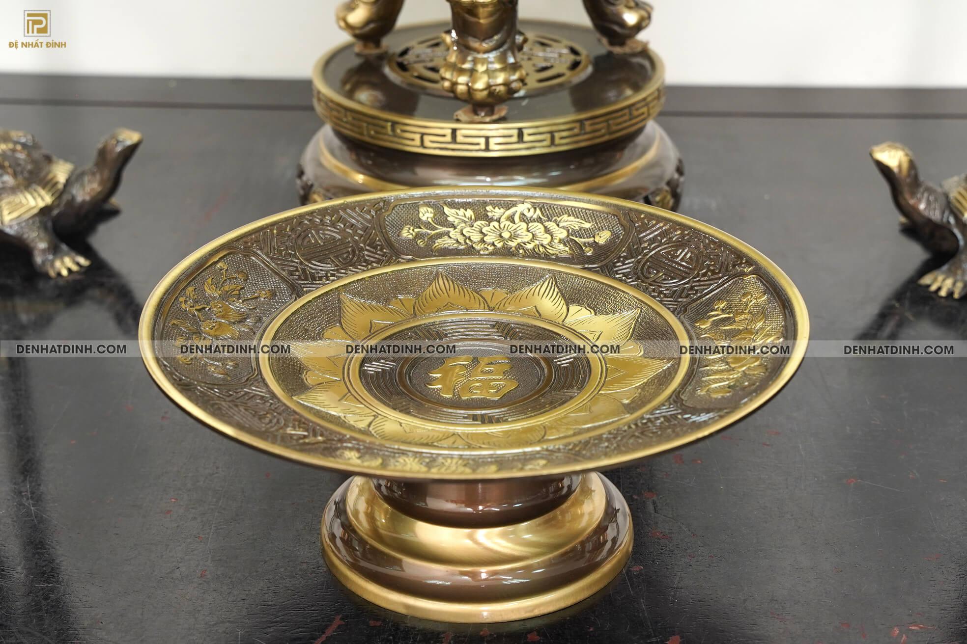 Điểm nhấn đặc biệt: Đỉnh đồng 5 chữ Phúc – Lộc – Thọ – Khang – Ninh được dát vàng nổi bật, sắc nét
