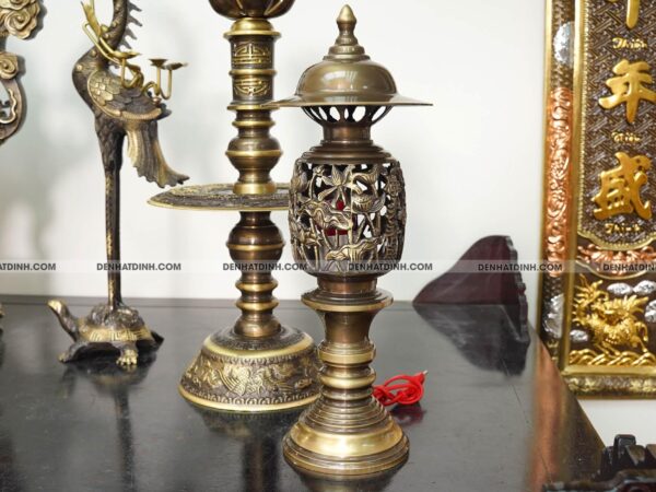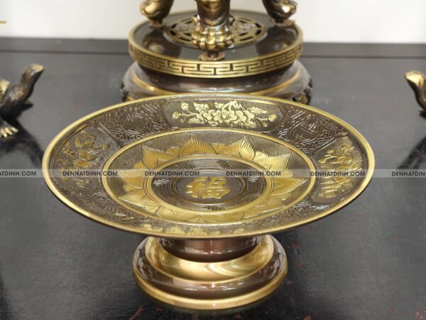 Điểm nhấn đặc biệt: Đỉnh đồng 5 chữ Phúc – Lộc – Thọ – Khang – Ninh được dát vàng nổi bật, sắc nét