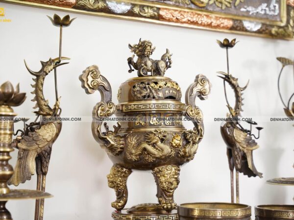 Khi nói đến việc trang trí và thờ cúng trên bàn thờ, bộ ngũ sự bằng đồng luôn là một lựa chọn tối ưu đến giá trị thẩm mỹ và ý nghĩa tâm linh sâu sắc. Trong bài viết này, chúng ta sẽ khám phá Bộ ngũ sự song long cuốn thư công nghệ (5 chữ) kèm 12 món, một sản phẩm không chỉ mang lại sự sang trọng mà còn thể hiện lòng thành kính và sự tôn vinh đối với tổ tiên.