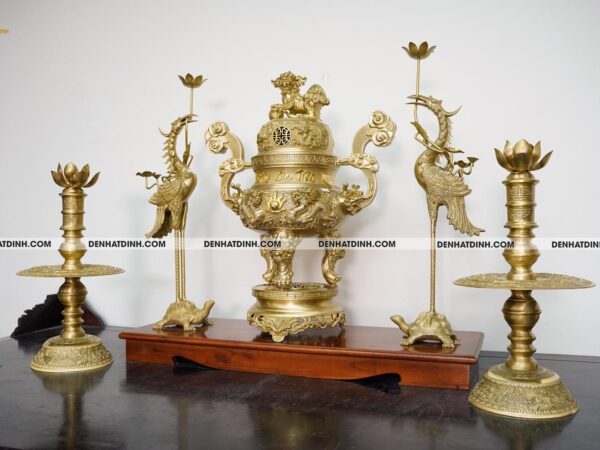 | Kích thước | Đỉnh: 65 cm – Hạc: 72 cm – Nến: 51 cm |
