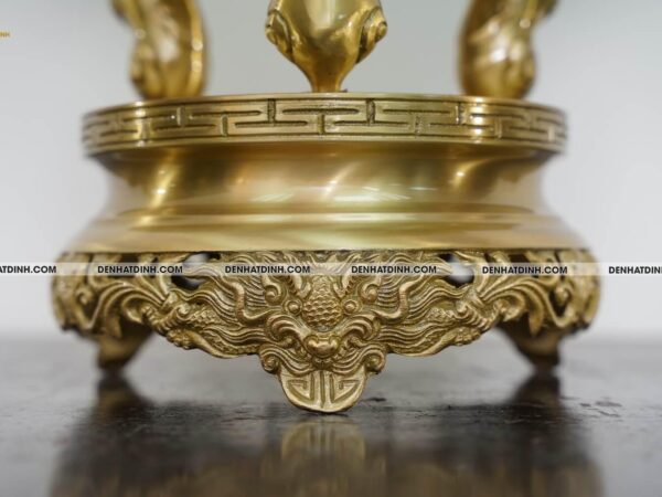 - Thiết kế độc đáo: Bộ Tam sự nến song long được thiết kế với hoa văn tinh xảo, bao gồm 1 đỉnh đồng và 2 chân nến. Thiết kế này tượng trưng cho sự kết nối giữa trời, đất và con người (Thiên – Địa – Nhân).