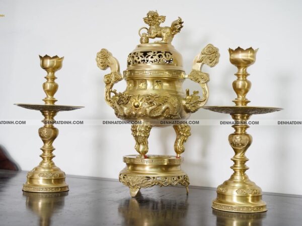 - Đặt bộ đỉnh đồng ở vị trí trang trọng nhất trên bàn thờ để đảm bảo tính linh thiêng và thẩm mỹ.