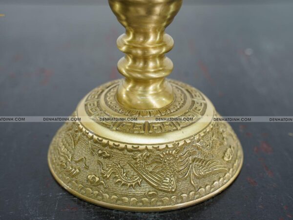 Tổng thể hình dáng chân nến tạo nên một vẻ đẹp hài hòa, vững chãi ở phần đế – thanh thoát ở phần thân – trang nghiêm ở phần đỉnh, đúng chuẩn bố cục phong thủy “thiên – địa – nhân”.