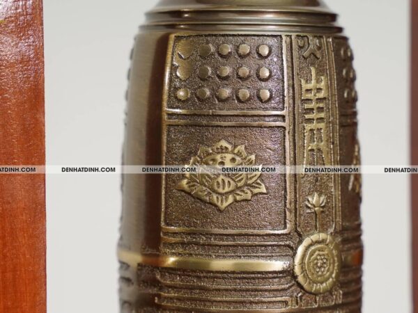 Hoa văn gồm các biểu tượng tâm linh như hoa sen, chữ Hán cổ và các họa tiết cổ điển Á Đông.