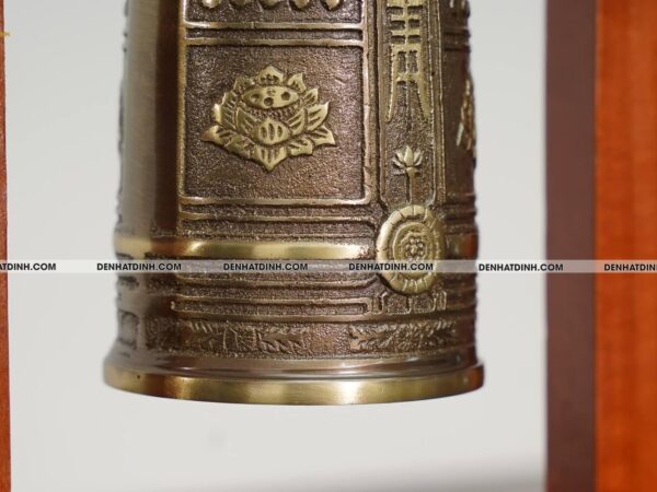 Khung gỗ màu cánh gián ấm áp, tôn lên vẻ đẹp trang nghiêm và linh thiêng của chuông.