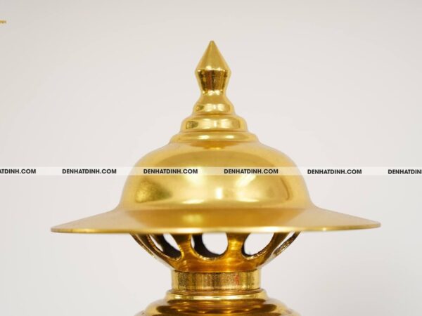 Phần chụp đèn tạo hình chóp nón, bên trong có lỗ thoát nhiệt giúp đèn hoạt động bền bỉ, an toàn trong không gian thờ cúng.