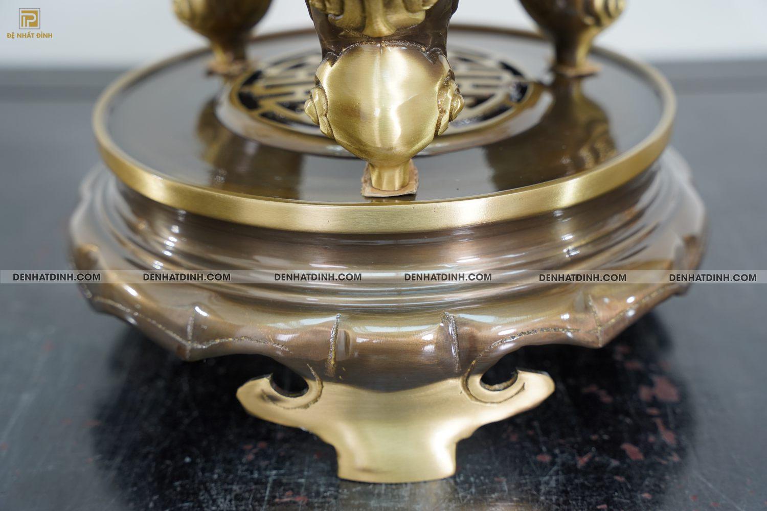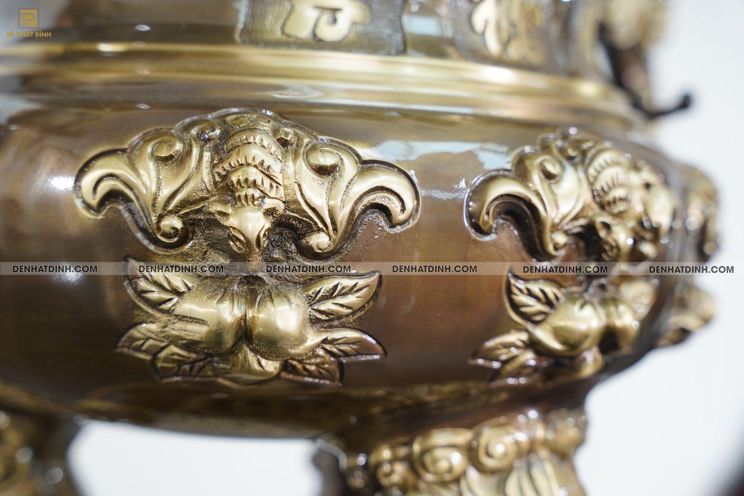 Toàn bộ đỉnh được làm từ đồng catut nguyên chất, nổi bật với độ bền cao và màu sắc trầm ấm. Lớp hun giả cổ được xử lý tỉ mỉ, tạo hiệu ứng cổ kính, sang trọng và đậm chất tâm linh.
