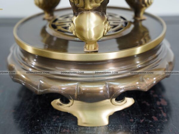 Toàn bộ đỉnh được làm từ đồng catut nguyên chất, nổi bật với độ bền cao và màu sắc trầm ấm. Lớp hun giả cổ được xử lý tỉ mỉ, tạo hiệu ứng cổ kính, sang trọng và đậm chất tâm linh.