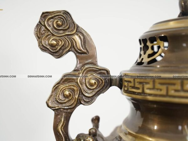 Hoa văn hoa sòi trên đỉnh đồng tượng trưng cho sự thịnh vượng, đem đến tài lộc và phúc khí cho gia đình. Sản phẩm cũng giúp tạo ra không gian thờ cúng bình an và thanh tịnh.