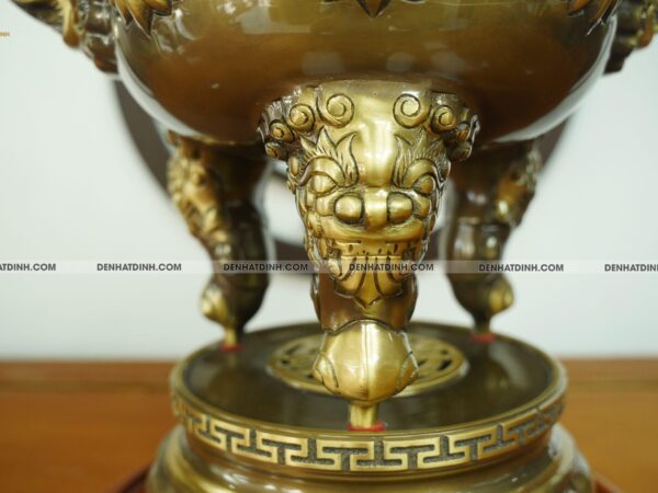 Một trong những yếu tố tạo nên vẻ đẹp độc đáo của mẫu đỉnh đồng này chính là màu hun cổ. Đây là màu sắc được tạo ra bằng cách xử lý bề mặt đồng, làm cho sản phẩm mang vẻ cổ kính, trang nghiêm như đã qua hàng thế kỷ. Màu hun cổ giúp sản phẩm giữ được nét đẹp lâu dài, không bị phai mờ theo thời gian. Đặc biệt, màu sắc này còn mang lại cảm giác ấm áp, gần gũi và vô cùng linh thiêng cho không gian thờ cúng.