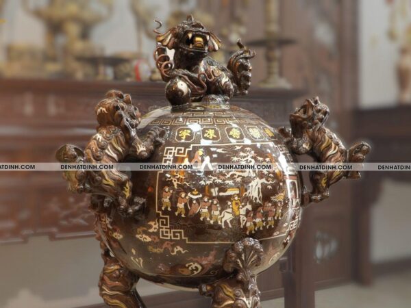 Hãy là người đầu tiên nhận xét “Đỉnh Thất lân đồng đỏ khảm ngũ sắc 1m17”