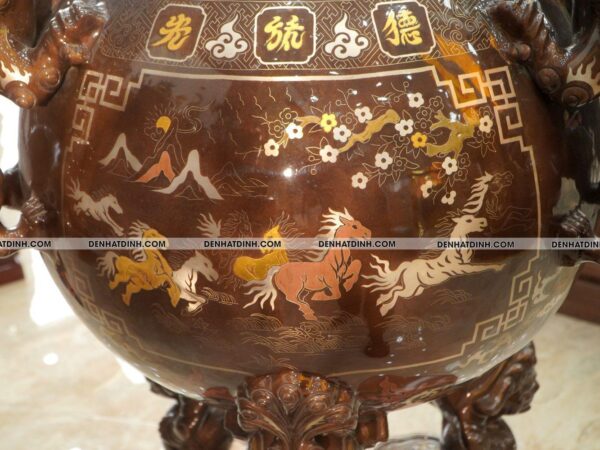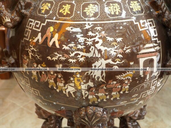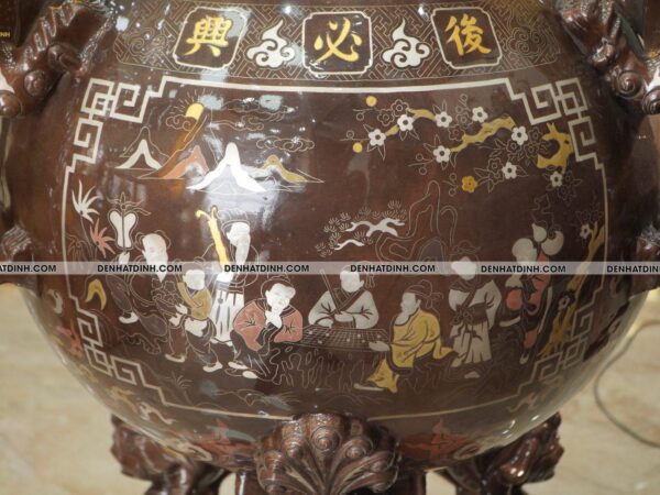 - Chất liệu: Đồng đỏ khảm ngũ sắc