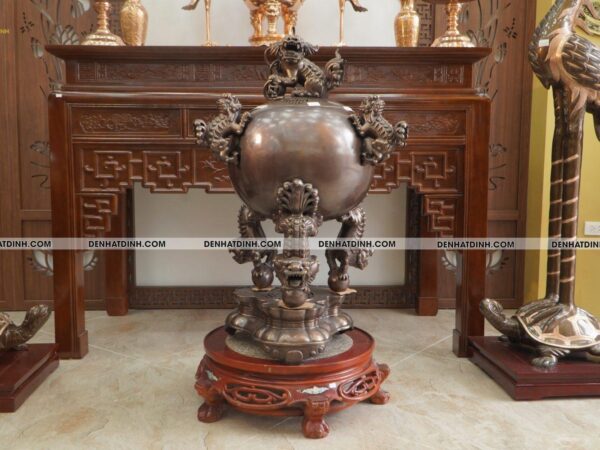- Tên sản phẩm: Đỉnh Thất lân vờn cầu đồng đỏ 1m trơn