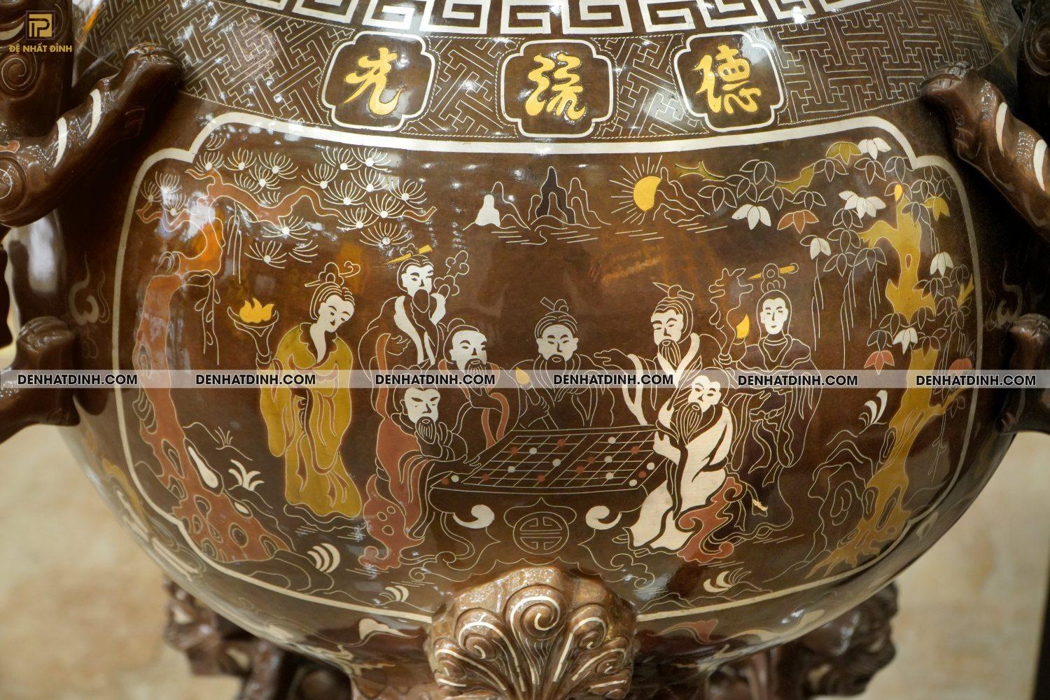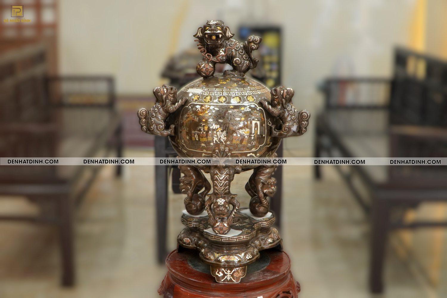 Hãy là người đầu tiên nhận xét “Đỉnh Thất lân vờn cầu đồng đỏ 90 khảm ngũ sắc”