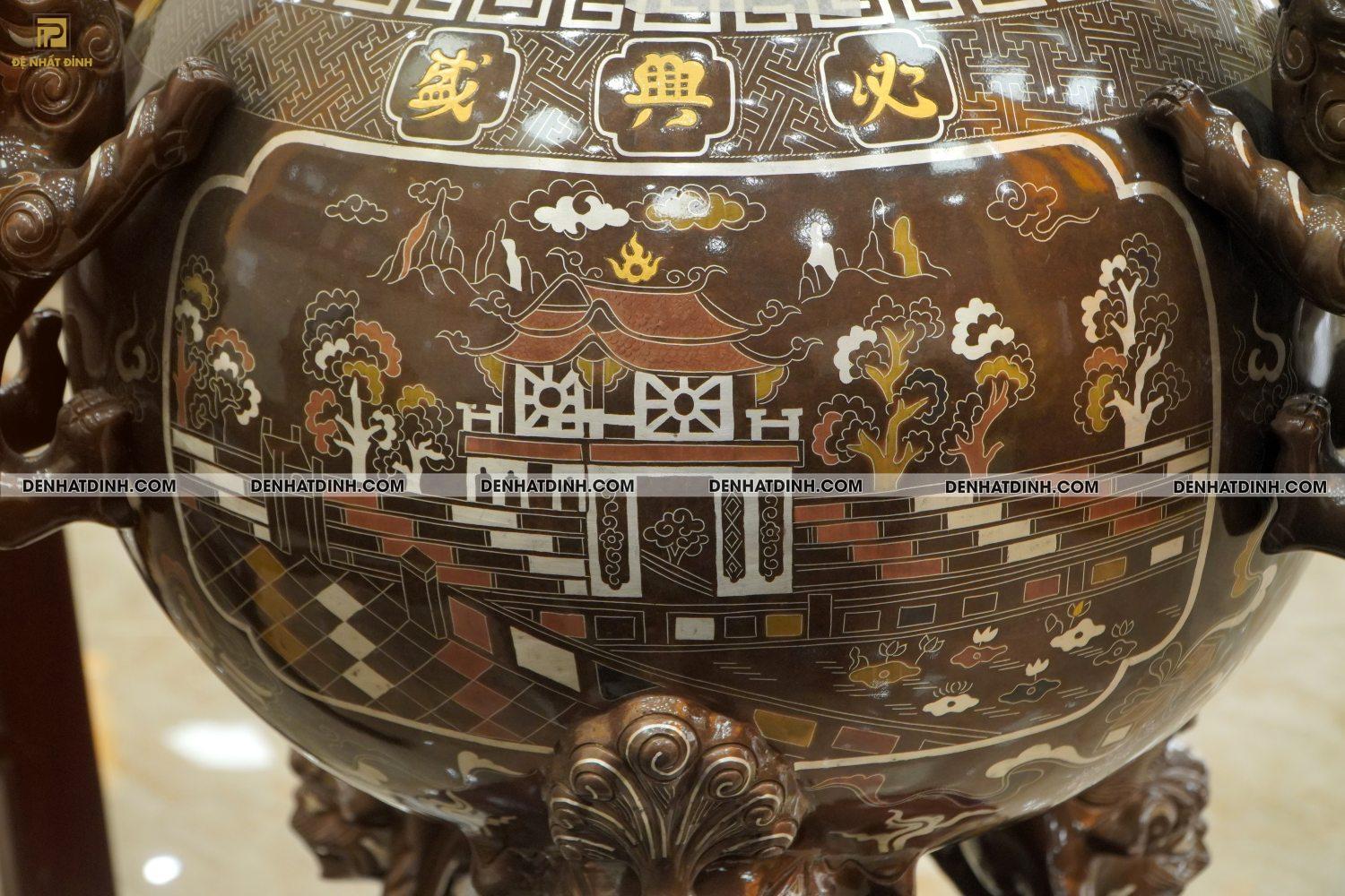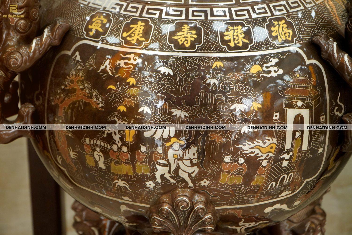 - Chất liệu: Đồng đỏ khảm ngũ sắc
